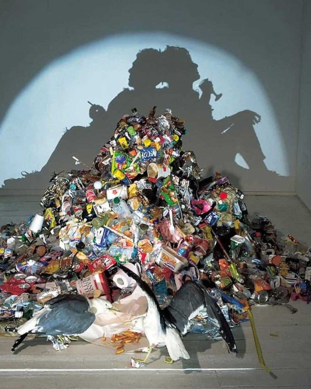 Η σκιά ενός ζευγαριού πάνω και πέρα απ' τα σκουπίδια.